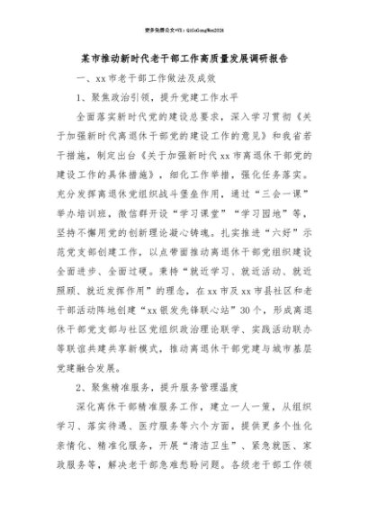 【七哥公文】2025年:【七哥公文】某市推动新时代老干部工作高质量发展调研报告+更多免费公文+VX:QiGeGongWen2024+更多免费公文+VX:QiGeGongWen2024