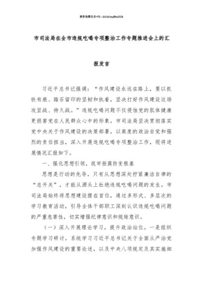 【七哥公文】2025年:【七哥公文】市司法局在全市违规吃喝专项整治工作专题推进会上的汇报发言+更多免费公文+VX:QiGeGongWen2024+更多免费公文+VX:QiGeGongWen2024