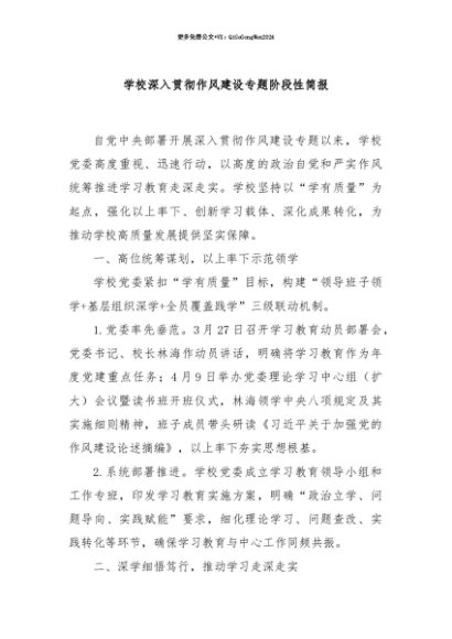 【七哥公文】2025年:【七哥公文】学校深入贯彻作风建设专题阶段性简报+更多免费公文+VX:QiGeGongWen2024+更多免费公文+VX:QiGeGongWen2024