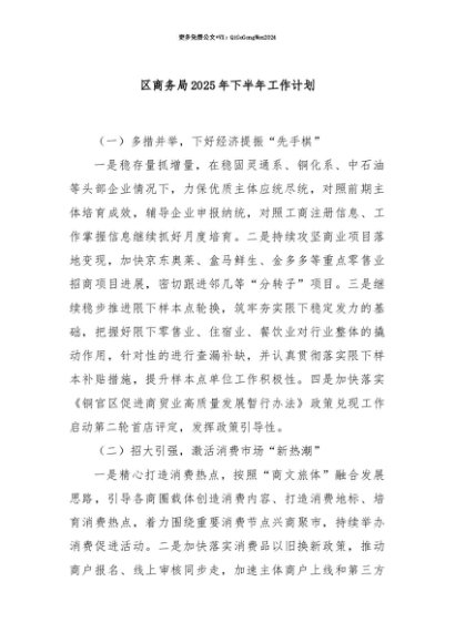 【七哥公文】2025年:【七哥公文】区商务局2025年下半年工作计划+更多免费公文+VX:QiGeGongWen2024+更多免费公文+VX:QiGeGongWen2024