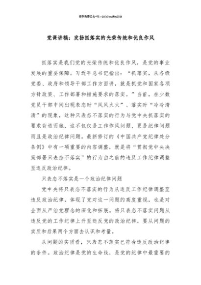 【七哥公文】2025年:【七哥公文】党课讲稿:发扬抓落实的光荣传统和优良作风+更多免费公文+VX:QiGeGongWen2024+更多免费公文+VX:QiGeGongWen2024