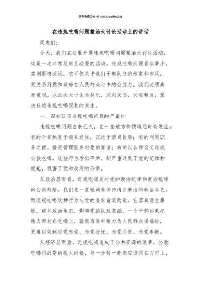 【七哥公文】2025年:【七哥公文】在违规吃喝问题整治大讨论活动上的讲话+更多免费公文+VX:QiGeGongWen2024+更多免费公文+VX:QiGeGongWen2024