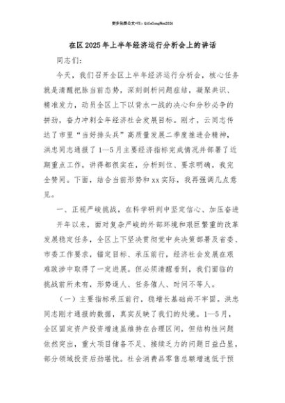 【七哥公文】2025年:【七哥公文】在区2025年上半年经济运行分析会上的讲话+更多免费公文+VX:QiGeGongWen2024+更多免费公文+VX:QiGeGongWen2024