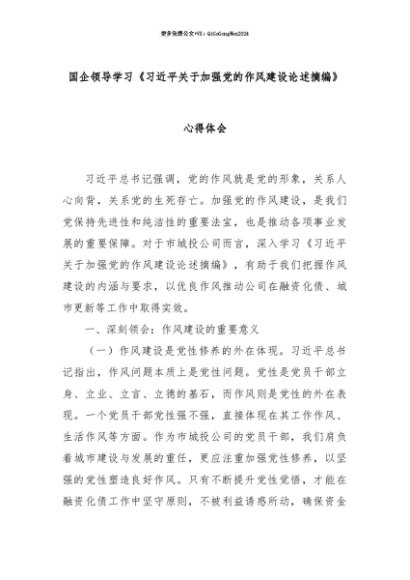 【七哥公文】2025年:【七哥公文】国企领导学习《习近平关于加强党的作风建设论述摘编》心得体会+更多免费公文+VX:QiGeGongWen2024+更多免费公文+VX:QiGeGongWen2024