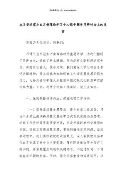 【七哥公文】2025年:【七哥公文】在县委巡察办6月份理论学习中心组专题学习研讨会上的发言(河南考察重要讲话精神)+更多免费公文+VX:QiGeGongWen2024+更多免费公文+VX:QiGeGongWen2024