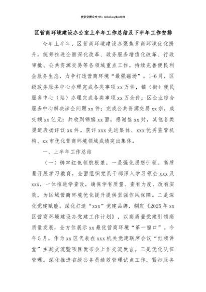 【七哥公文】2025年:【七哥公文】区营商环境建设办公室上半年工作总结及下半年工作安排+更多免费公文+VX:QiGeGongWen2024+更多免费公文+VX:QiGeGongWen2024