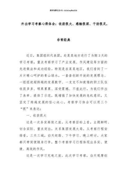 【七哥公文】2025年:【七哥公文】外出学习考察心得体会:收获很大、感触很深、干劲很足,非常经典+更多免费公文+VX:QiGeGongWen2024+更多免费公文+VX:QiGeGongWen2024