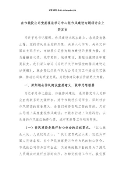 【七哥公文】2025年:【七哥公文】在市城投公司党委理论学习中心组作风建设专题研讨会上的发言+更多免费公文+VX:QiGeGongWen2024+更多免费公文+VX:QiGeGongWen2024