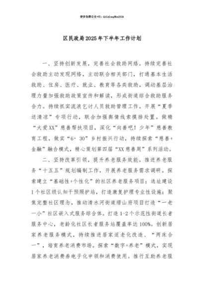 【七哥公文】2025年:【七哥公文】区民政局2025年下半年工作计划+更多免费公文+VX:QiGeGongWen2024+更多免费公文+VX:QiGeGongWen2024