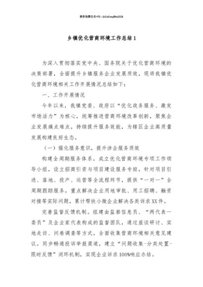 【七哥公文】2025年:【七哥公文】乡镇优化营商环境工作总结1+更多免费公文+VX:QiGeGongWen2024+更多免费公文+VX:QiGeGongWen2024