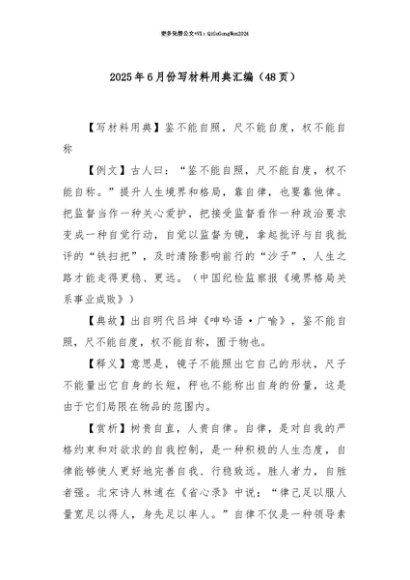 【七哥公文】2025年:【七哥公文】2025年6月份写材料用典汇编(48页)+更多免费公文+VX:QiGeGongWen2024+更多免费公文+VX:QiGeGongWen2024