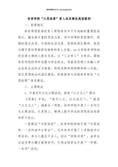 【七哥公文】2025年:【七哥公文】体育学院“大思政课”育人体系建设典型案例+更多免费公文+VX:QiGeGongWen2024+更多免费公文+VX:QiGeGongWen2024