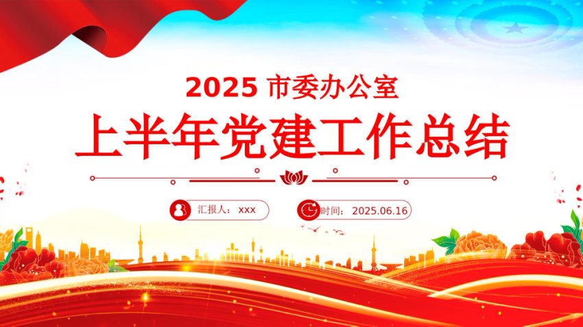 【七哥公文】2025年:【七哥公文】市委办公室上半年党建工作总结PPT模板+更多免费公文+VX:QiGeGongWen2024+更多免费公文+VX:QiGeGongWen2024