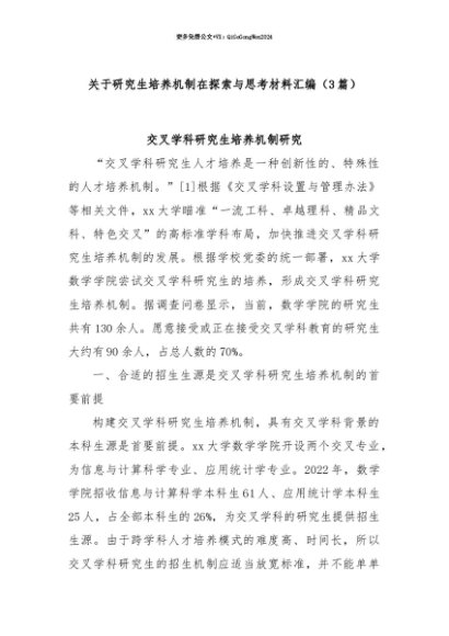 【七哥公文】2025年:【七哥公文】(3篇)关于研究生培养机制在探索与思考材料汇编+更多免费公文+VX:QiGeGongWen2024+更多免费公文+VX:QiGeGongWen2024