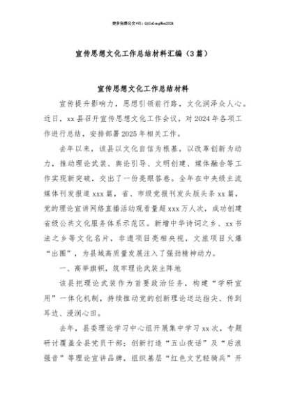 【七哥公文】2025年:【七哥公文】(3篇)宣传思想文化工作总结材料汇编+更多免费公文+VX:QiGeGongWen2024+更多免费公文+VX:QiGeGongWen2024