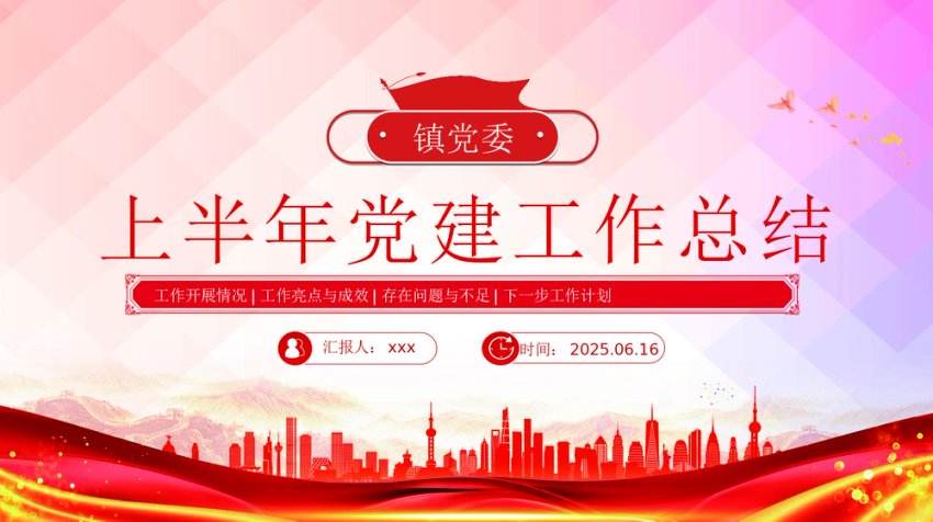 【七哥公文】2025年:【七哥公文】镇党委上半年党建工作总结PPT模板+更多免费公文+VX:QiGeGongWen2024+更多免费公文+VX:QiGeGongWen2024