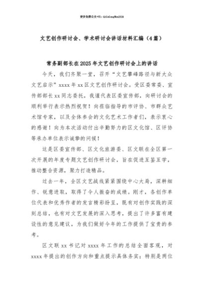 【七哥公文】2025年:【七哥公文】(4篇)文艺创作研讨会、学术研讨会讲话材料汇编+更多免费公文+VX:QiGeGongWen2024+更多免费公文+VX:QiGeGongWen2024