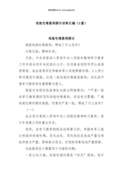 【七哥公文】2025年:【七哥公文】(3篇)违规吃喝案例探讨材料汇编+更多免费公文+VX:QiGeGongWen2024+更多免费公文+VX:QiGeGongWen2024