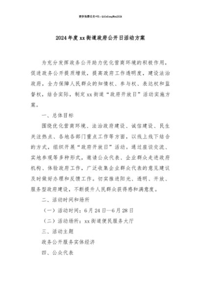 【七哥公文】2025年:【七哥公文】2024年度xx街道政府公开日活动方案+更多免费公文+VX:QiGeGongWen2024+更多免费公文+VX:QiGeGongWen2024