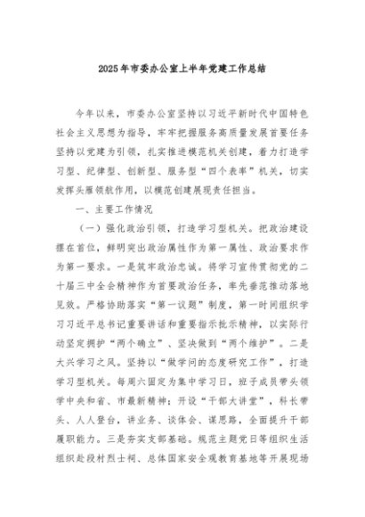 【七哥公文】2025年:【七哥公文】2025年市委办公室上半年党建工作总结+更多免费公文+VX:QiGeGongWen2024+更多免费公文+VX:QiGeGongWen2024