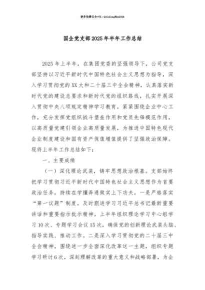 【七哥公文】2025年:【七哥公文】国企党支部2025年半年工作总结+更多免费公文+VX:QiGeGongWen2024+更多免费公文+VX:QiGeGongWen2024
