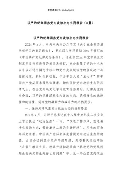 【七哥公文】2025年:【七哥公文】(3篇)以严的纪律涵养党内政治生态主题报告+更多免费公文+VX:QiGeGongWen2024+更多免费公文+VX:QiGeGongWen2024
