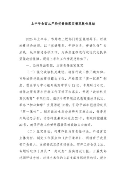 【七哥公文】2025年:【七哥公文】上半年全面从严治党责任落实情况报告总结+更多免费公文+VX:QiGeGongWen2024+更多免费公文+VX:QiGeGongWen2024