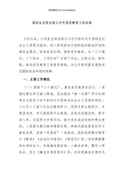 【七哥公文】2025年:【七哥公文】国有企业党支部上半年党员教育工作总结+更多免费公文+VX:QiGeGongWen2024+更多免费公文+VX:QiGeGongWen2024