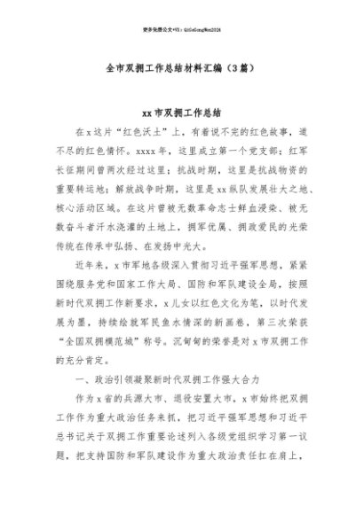 【七哥公文】2025年:【七哥公文】(3篇)全市双拥工作总结材料汇编+更多免费公文+VX:QiGeGongWen2024+更多免费公文+VX:QiGeGongWen2024