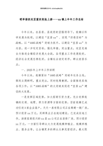 【七哥公文】2025年:【七哥公文】硬举措抓攻坚重实效抢上游——xx镇上半年工作总结+更多免费公文+VX:QiGeGongWen2024+更多免费公文+VX:QiGeGongWen2024