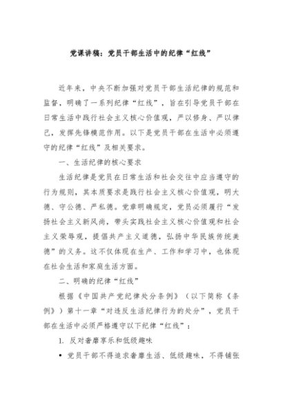 【七哥公文】2025年:【七哥公文】党课讲稿:党员干部生活中的纪律“红线”+更多免费公文+VX:QiGeGongWen2024+更多免费公文+VX:QiGeGongWen2024