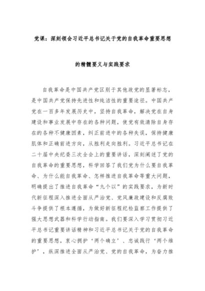 【七哥公文】2025年:【七哥公文】党课:深刻领会习近平总书记关于党的自我革命重要思想的精髓要义与实践要求+更多免费公文+VX:QiGeGongWen2024+更多免费公文+VX:QiGeGongWen2024