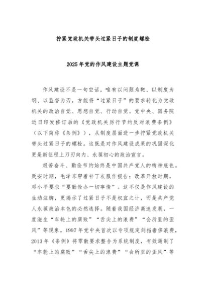 【七哥公文】2025年:【七哥公文】2025年党的作风建设主题党课:拧紧党政机关带头过紧日子的制度螺栓+更多免费公文+VX:QiGeGongWen2024+更多免费公文+VX:QiGeGongWen2024
