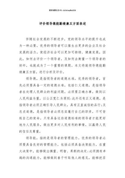 【七哥公文】2025年:【七哥公文】评价领导德能勤绩廉五方面表述+更多免费公文+VX:QiGeGongWen2024+更多免费公文+VX:QiGeGongWen2024