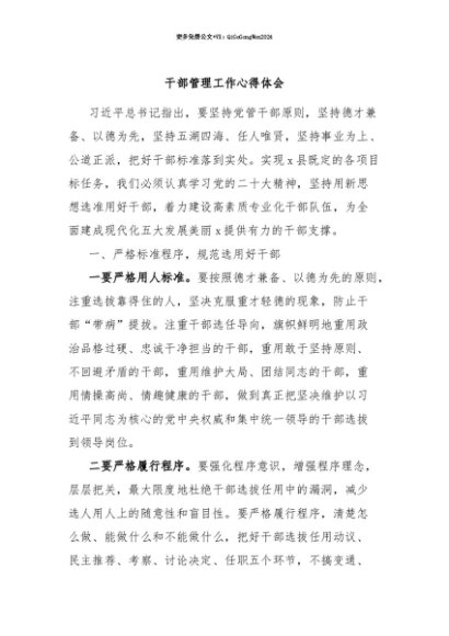 【七哥公文】2025年:【七哥公文】干部管理工作心得体会+更多免费公文+VX:QiGeGongWen2024+更多免费公文+VX:QiGeGongWen2024