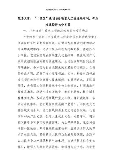 【七哥公文】2025年:【七哥公文】理论文章:“十四五”规划102项重大工程进展顺利,有力支撑经济社会发展+更多免费公文+VX:QiGeGongWen2024+更多免费公文+VX:QiGeGongWen2024