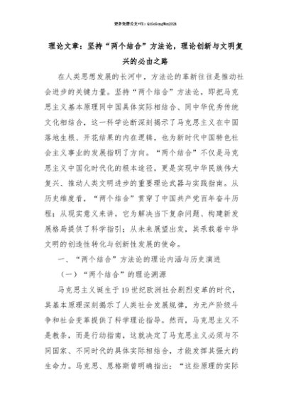 【七哥公文】2025年:【七哥公文】理论文章:坚持“两个结合”方法论,理论创新与文明复兴的必由之路+更多免费公文+VX:QiGeGongWen2024+更多免费公文+VX:QiGeGongWen2024