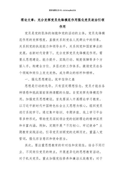 【七哥公文】2025年:【七哥公文】理论文章:充分发挥党员先锋模范作用强化党员政治引领作用+更多免费公文+VX:QiGeGongWen2024+更多免费公文+VX:QiGeGongWen2024