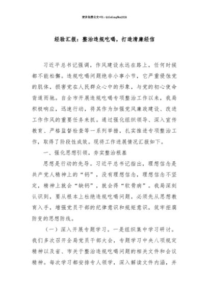 【七哥公文】2025年:【七哥公文】经验汇报:整治违规吃喝,打造清廉经信+更多免费公文+VX:QiGeGongWen2024+更多免费公文+VX:QiGeGongWen2024
