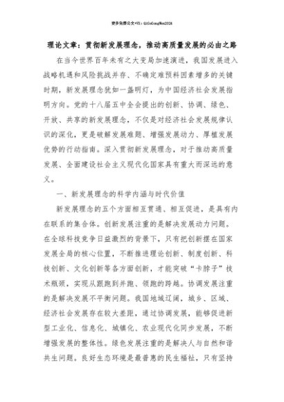 【七哥公文】2025年:【七哥公文】理论文章:贯彻新发展理念,推动高质量发展的必由之路+更多免费公文+VX:QiGeGongWen2024+更多免费公文+VX:QiGeGongWen2024