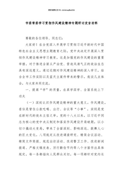 【七哥公文】2025年:【七哥公文】市委常委学习贯彻作风建设精神专题研讨发言材料+更多免费公文+VX:QiGeGongWen2024+更多免费公文+VX:QiGeGongWen2024