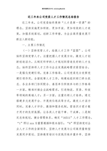 【七哥公文】2025年:【七哥公文】近三年来公司党委人才工作情况总结报告+更多免费公文+VX:QiGeGongWen2024+更多免费公文+VX:QiGeGongWen2024