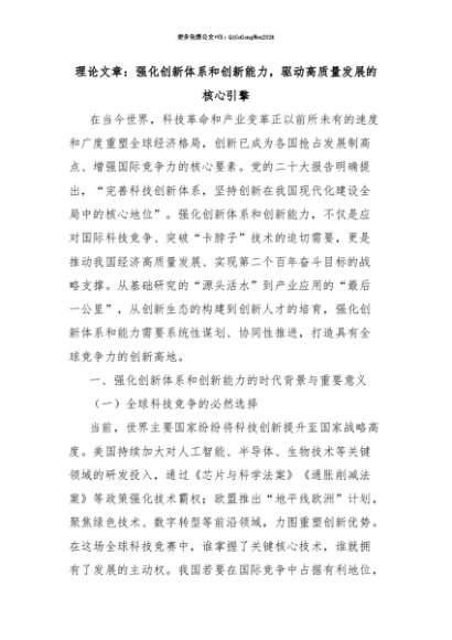 【七哥公文】2025年:【七哥公文】理论文章:强化创新体系和创新能力,驱动高质量发展的核心引擎+更多免费公文+VX:QiGeGongWen2024+更多免费公文+VX:QiGeGongWen2024