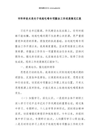 【七哥公文】2025年:【七哥公文】市科学技术局关于违规吃喝专项整治工作进展情况汇报+更多免费公文+VX:QiGeGongWen2024+更多免费公文+VX:QiGeGongWen2024