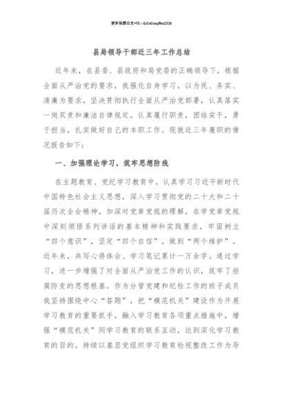 【七哥公文】2025年:【七哥公文】县局领导干部近三年工作总结+更多免费公文+VX:QiGeGongWen2024+更多免费公文+VX:QiGeGongWen2024