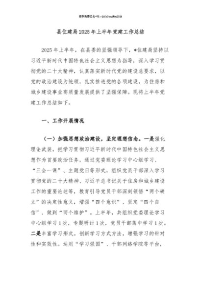 【七哥公文】2025年:【七哥公文】县住建局2025年上半年党建工作总结+更多免费公文+VX:QiGeGongWen2024+更多免费公文+VX:QiGeGongWen2024