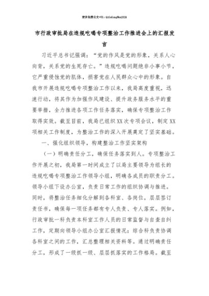 【七哥公文】2025年:【七哥公文】市行政审批局在违规吃喝专项整治工作推进会上的汇报发言+更多免费公文+VX:QiGeGongWen2024+更多免费公文+VX:QiGeGongWen2024