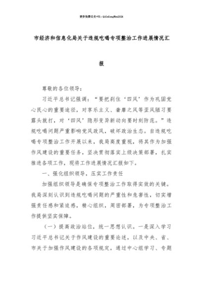 【七哥公文】2025年:【七哥公文】市经济和信息化局关于违规吃喝专项整治工作进展情况汇报+更多免费公文+VX:QiGeGongWen2024+更多免费公文+VX:QiGeGongWen2024