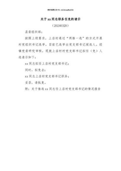 【七哥公文】2025年:【七哥公文】关于xx同志职务任免的请示+更多免费公文+VX:QiGeGongWen2024+更多免费公文+VX:QiGeGongWen2024