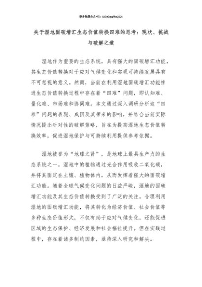 【七哥公文】2025年:【七哥公文】关于湿地固碳增汇生态价值转换四难的思考:现状、挑战与破解之道+更多免费公文+VX:QiGeGongWen2024+更多免费公文+VX:QiGeGongWen2024